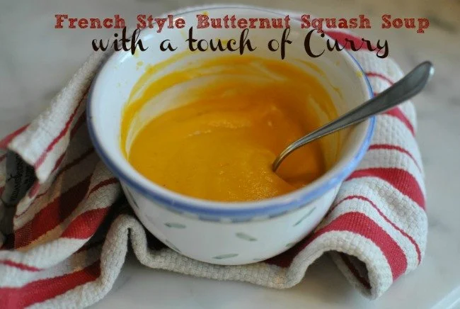 Squash soups are the perfect vegetable soup – filled with fiber and a touch of sweetness, the bowl just disappears. Pumpkins and squashes are now very available in France at the winter markets, and these american ingredients are becoming very popular there. This French style butternut squash soup with a touch of curry, enriched with a touch of butter and finished with creme fraiche is my latest obsession, my winter therapy, bringing golden warmth to gray winter days.